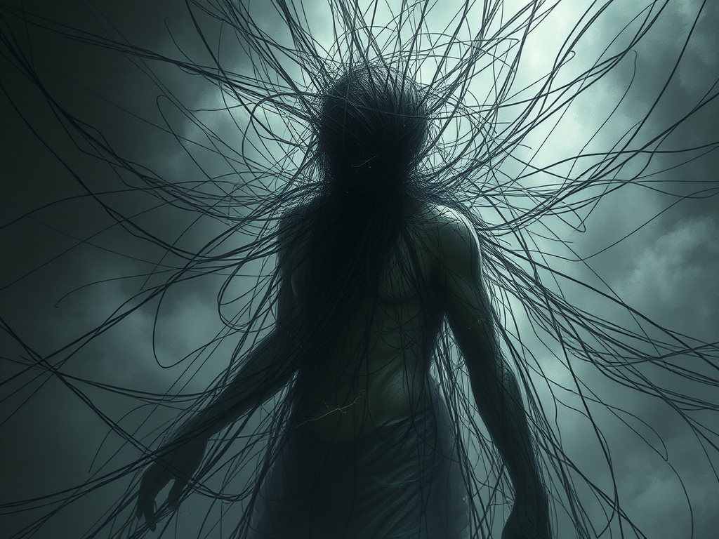 This fired current in my bones a charge of lightning there! then as suddenly gone…dissipating into the false connections of black threads. My arms tangled in the shadowy gauze. My legs tripped on the shadowy lines. I cannot move forward. I cannot move backwards. I am trapped in a distant cage. It is deep in the folds of grey numb matter, clouding all connections from neurons to neurons.